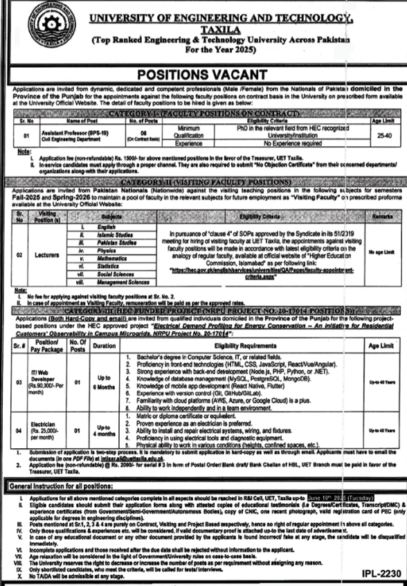 UET Taxila Jobs 2025 | Contract & Project-Based Career Opportunities 2025